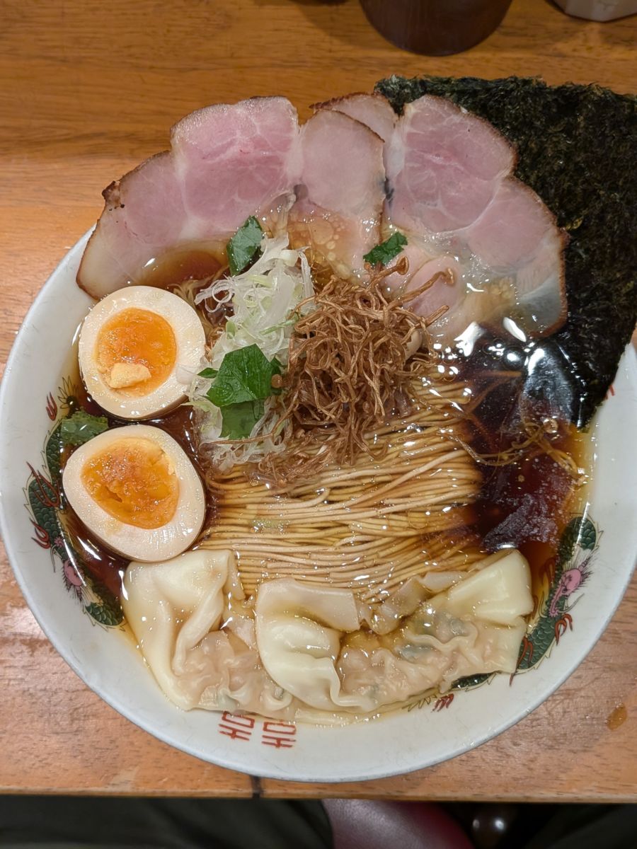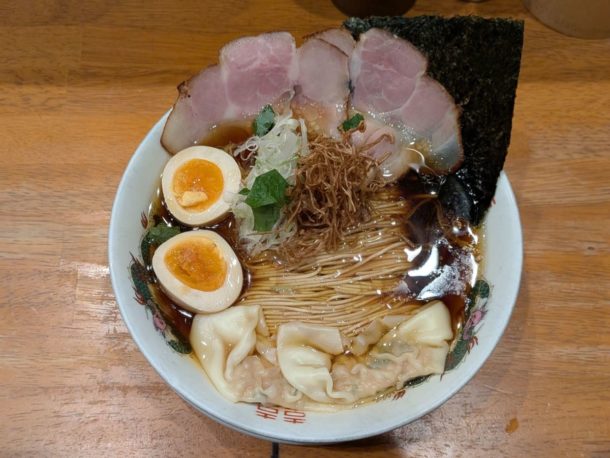 岡直三郎商店の醤油をつかった無化調ラーメン。