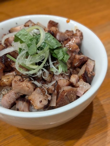 炙りの風味が香ばしいしっとりチャーシューと甘辛いタレが米に絡んで最高でした。