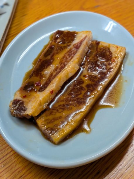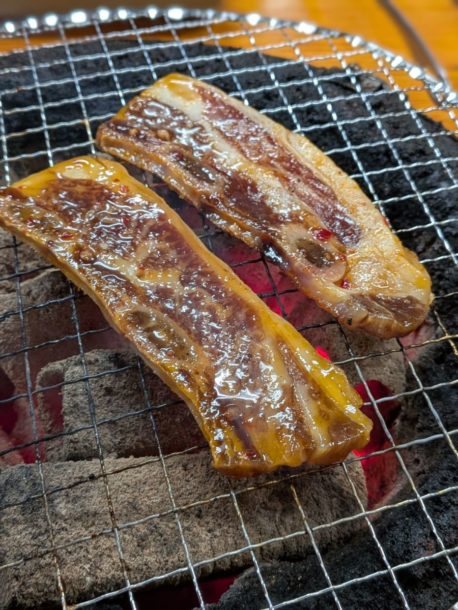 サシ強めの肉をサッと炙り、脂の甘みがふわっと広がる。
