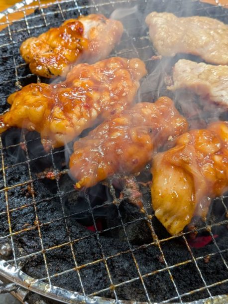店内は煙モクモク系。炭火で焼くスタイルが似合う、勢いある一軒。