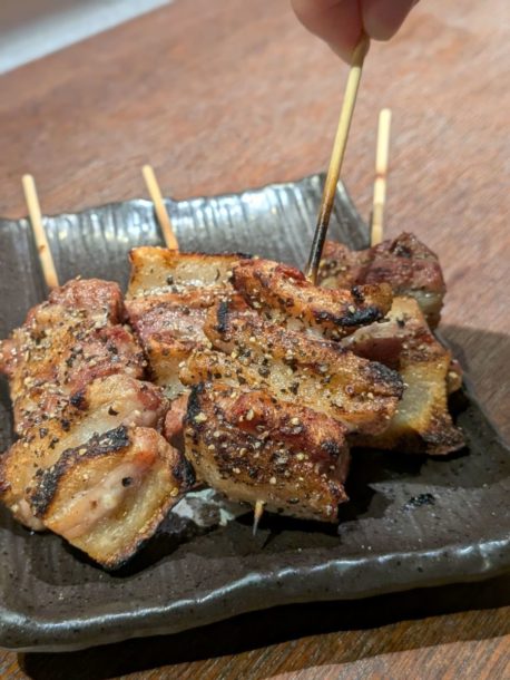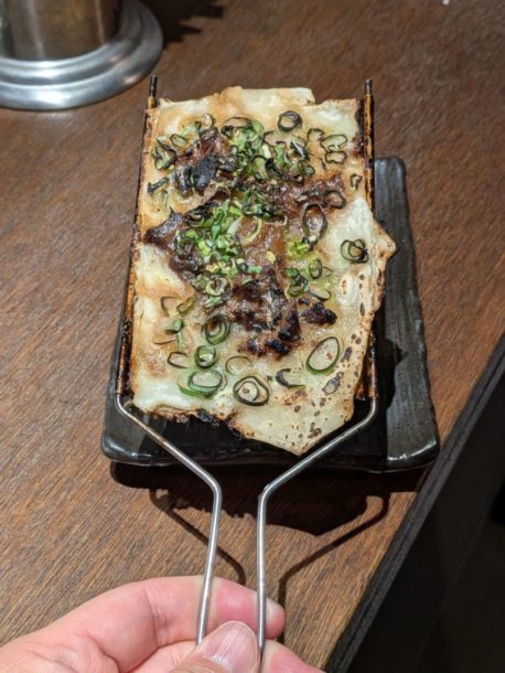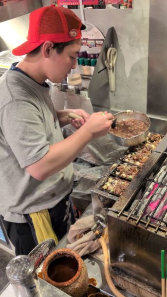 オーダー、盛り付け、焼き、ドリンク、洗い物、会計すべて1人でやられてます