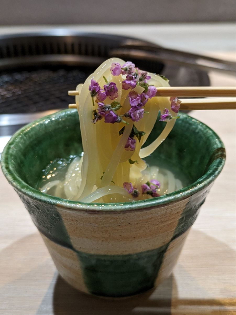 穂紫蘇が入ったさっぱり冷麺。最高にさっぱり。