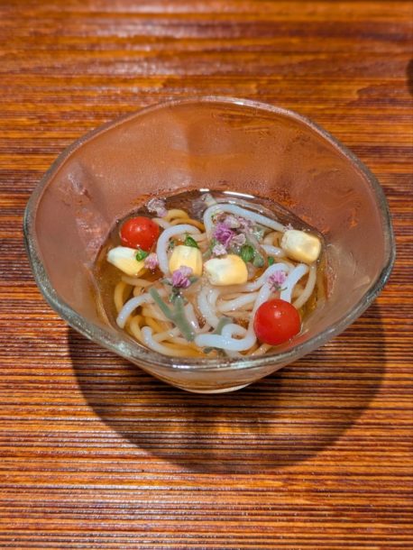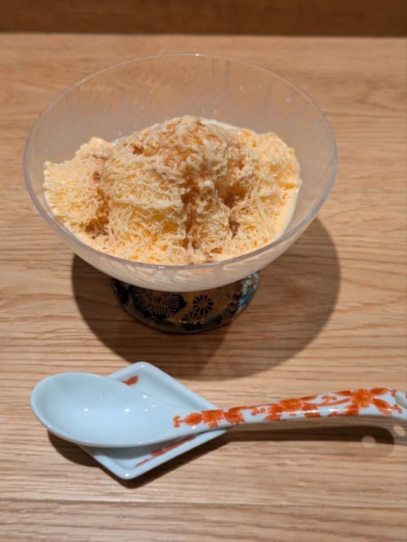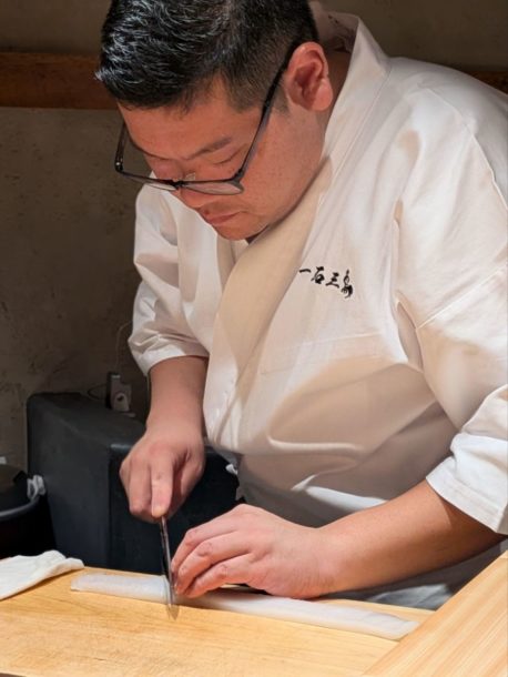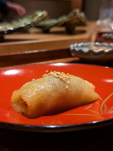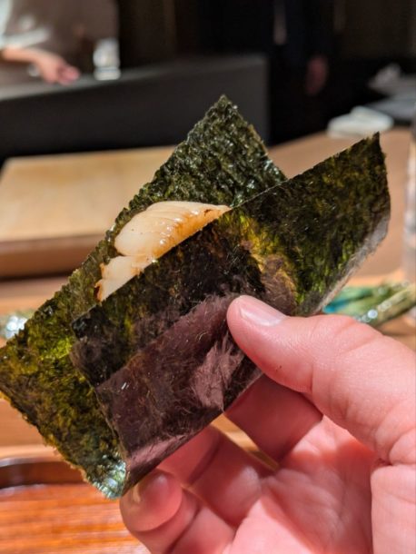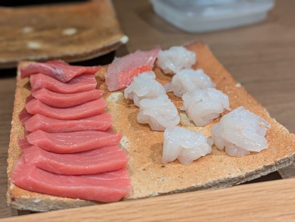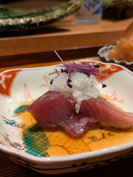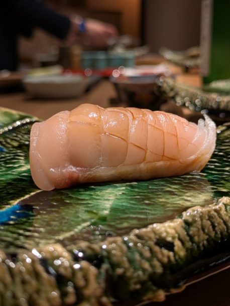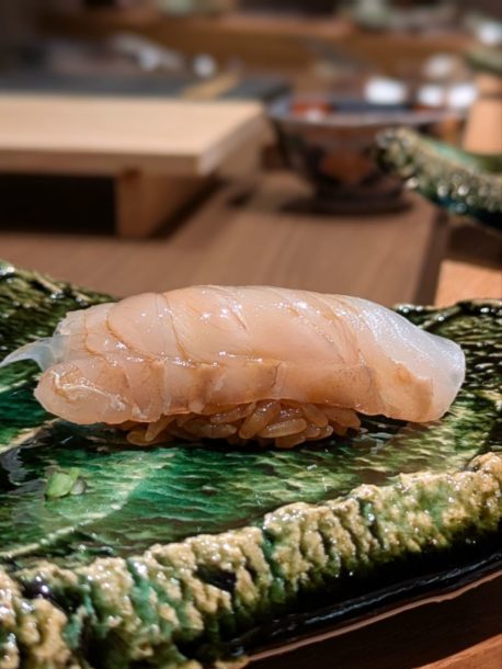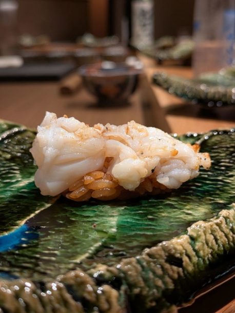 軽く火入れしてレアで頂く肉厚のある身は贅沢