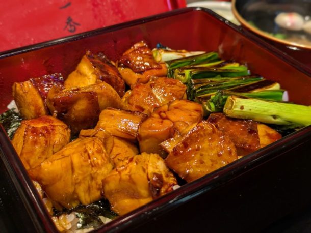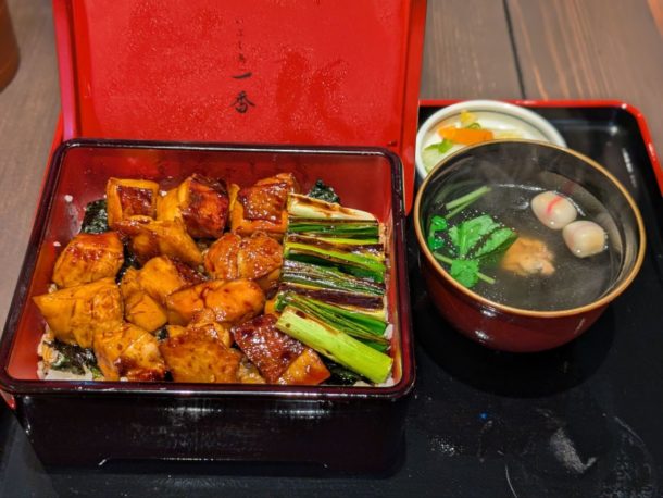 焼き鳥・鶏料理2025.09.19 喘 息 男 いぶし鳥 一香 ★★★☆☆【京都】 ツイート シェア はてブ LINE Pocket スポンサーリンク 先日TVのよーいどんのオススメ3で嵐丸店主が紹介してたお店やたら美味そうやったんで行ってきました。店はお洒落でカッコいい店に入るとTVの影響も有るのかも知れませんが14時前やのにかなり混雑してました。 ●とりワンタン 4個あっさりスープが美味しかった ワンタンにも燻香が穂のかに薫ります軟骨のコリコリ感もいい ●出汁巻き玉子 美味しい。添えてあったガリがさっぱりしていい感じでした。 ●名物いぶし鳥重 吸い物付 天日塩に1日漬け込んだ胸&もも 桜チップで燻し窯の中で水分を飛ばし、薫りをつけて秘伝のタレに漬け込んで低温調理した鶏肉は弾力や風味が他にない感じ。 羽釜で炊いたコシヒカリや海苔、炭焼きした葱が良いバランスでした。 さっきの出汁巻き玉子とお重を一緒に食べたら尚美味しかった。**************************************いぶし鳥 一香 スポンサーリンク ツイート シェア はてブ LINE Pocket feedly