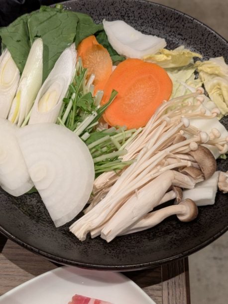 (玉葱、えのき、しめじ、白菜、人参、白葱、水菜、ほうれん草、豆腐)