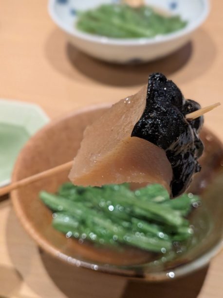 寒い日はやっぱりおでん。鯨のコロ、菊菜をオーダー。