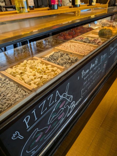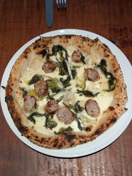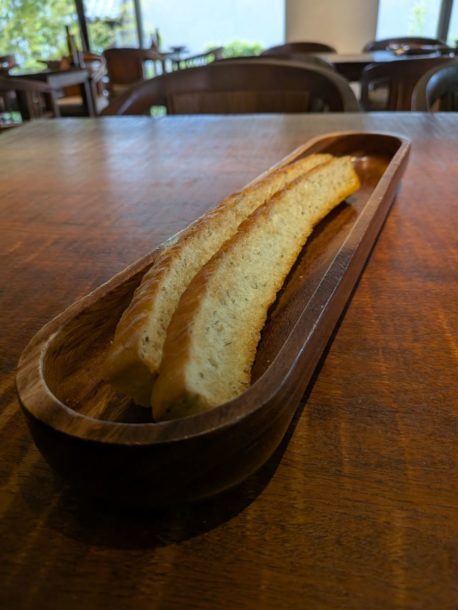 細長いスタイルで見た目もお洒落。香りもよく、ピッツァへの期待が高まります。