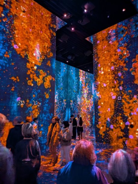 人が立ち止まると新しい花が咲き、触れると花びらが散って、また別の場所で生まれ変わる——。あなたの行動が作品の世界に影響を与える、「生と死」という時間そのものを体感する作品です。