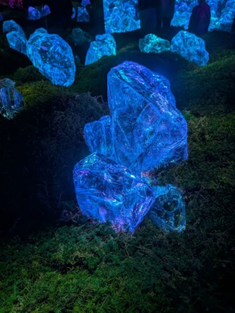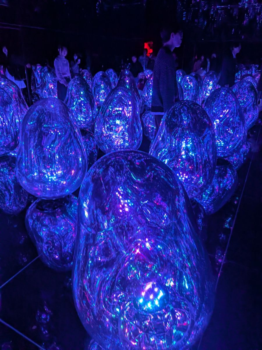 この光る卵にそっと触れると、32種類の特別な「固形化された光の色」の一つに輝き、その音色が周囲の光へと伝播していきます。人が動いたり立ち止まったりするたびに、この小宇宙は変化し続けます。光に触れることで、あなた自身も作品の一部となる、幻想的な体験です。