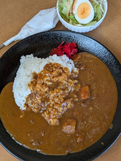 カレーライスのセットを注文。セットにはドリンクとミニサラダが付きます。