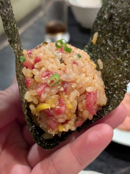 皆が大好きなユッケ×おにぎりの最強組み合わせ