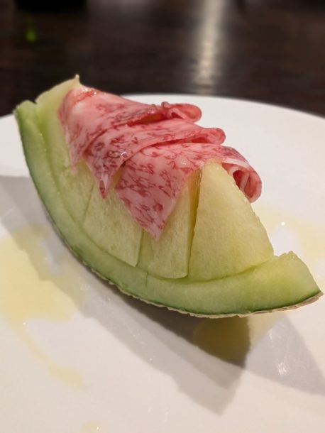 ●鹿児島 北薩摩牛リブロースの熟成生ハムとメロン