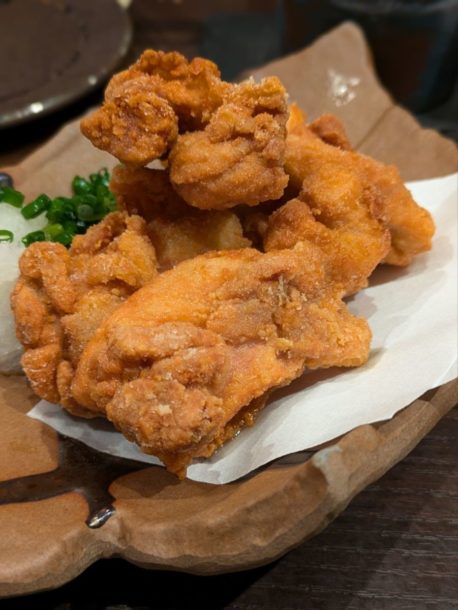 ✔唐揚げ 丹波の地鶏はジューシーでおろしポン酢が良くあいます