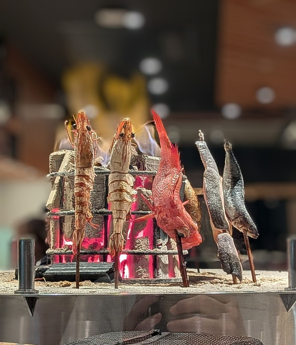 海と大地の食材を国産炭火で焼き上げてました