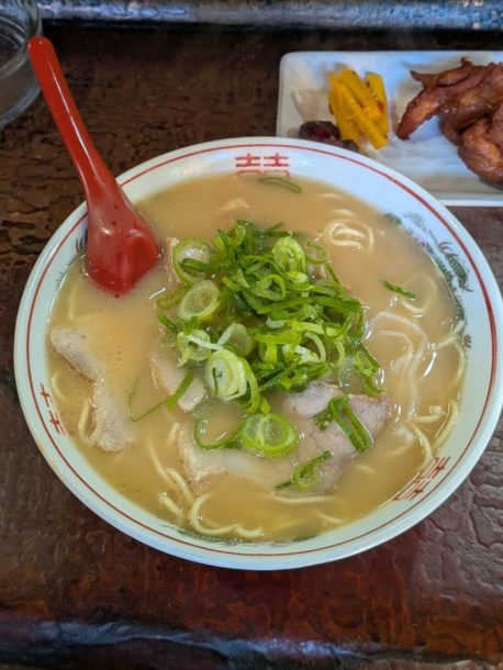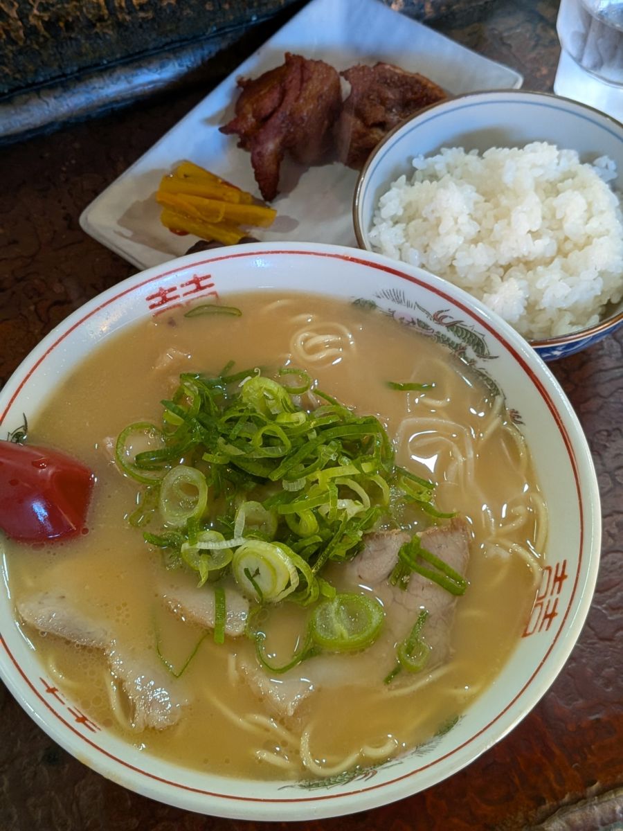 ラーメン・つけ麺2025.11.26 喘 息 男 天龍 ★★★☆☆【京都】 ツイート シェア はてブ LINE Pocket スポンサーリンク 北大路の天龍と関係あるんかな?と思い続けて20年以上。そもそも営業してるのかも分からんかったけど、たまたま出入りするお客さんを見かけて思い切って入店。 入ってみたら、まさかの満席でビックリ。老舗の雰囲気に、愛想のいいお母さん。こういう店、最高です。玉木宏や横浜ベイスターズ選手のサインも多数ありました。 ラーメンセット 1,000円 ライス付き 唐揚げ2個・漬物 めちゃくちゃ安い。ラーメンは大黒ラーメンっぽい感じで、個人的にどストライク。唯一残念なのは喫煙可なところ。ラーメン屋のカウンターでタバコ吸える店、久々に見た…。 ******************************* 天龍 スポンサーリンク ツイート シェア はてブ LINE Pocket feedly