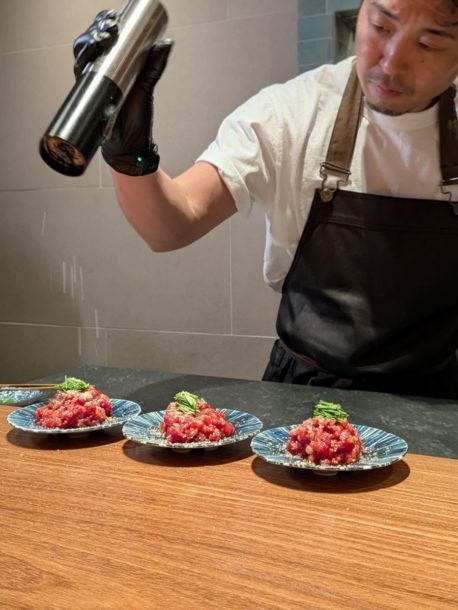 肉2025.12.16 喘 息 男 北新地三日月 ★★★★☆【大阪】 ツイート シェア はてブ LINE Pocket スポンサーリンク 永遠にユッケを食べる会 やまさん牛 雌黒毛和牛のリブロースかぶりです 手際良くカットして こんな感じで細かくカットできました。 花が開いたように美しく 卵黄を3つ落として タレをかけて 混ぜ混ぜして 完成。めっちゃ美味い たまらん 最後とんでもないのを出してもらいましたユッケ丼 ごはんより肉の方が多いぞ(笑)ただただ贅沢な丼を堪能しました ******************************************** 北新地三日月 スポンサーリンク ツイート シェア はてブ LINE Pocket feedly