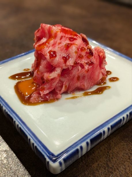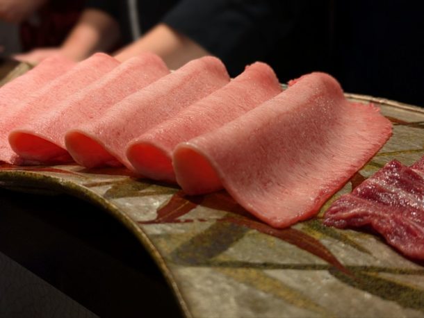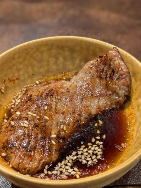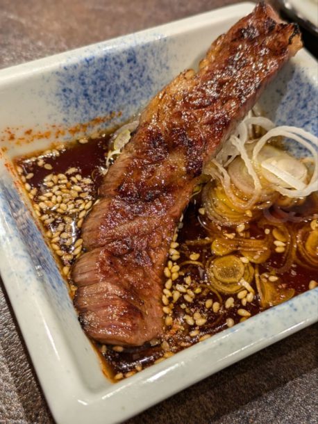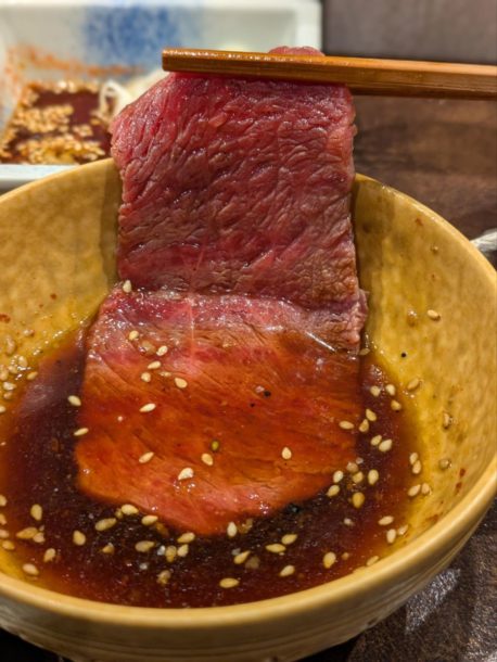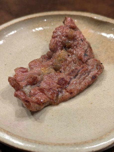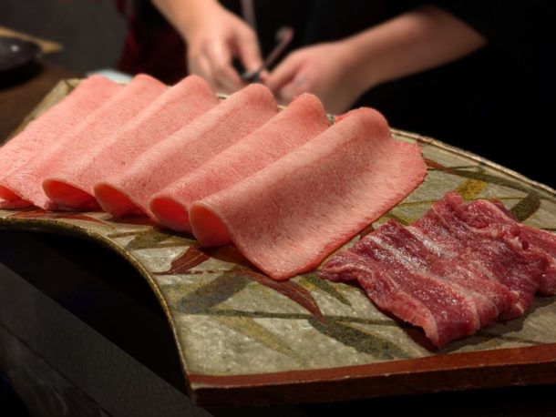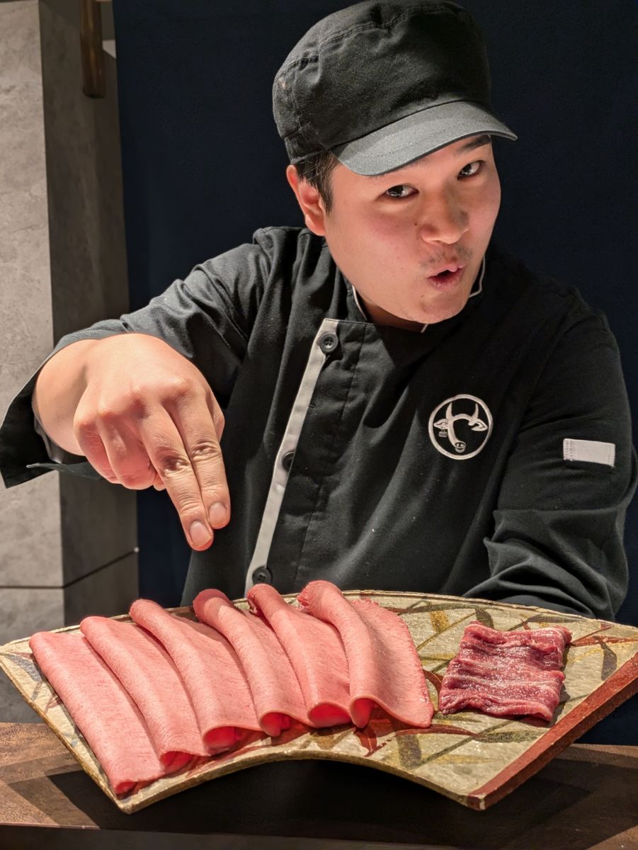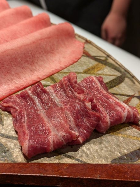 この薄さでカットしたサーロインは口どけ良く美味しい