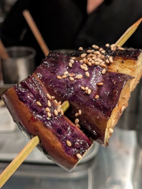 赤茄子は焼きながら鶏油でしょうか??油を塗られてるんで