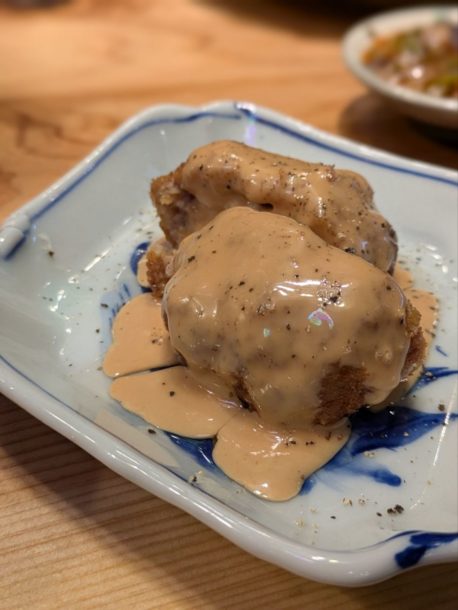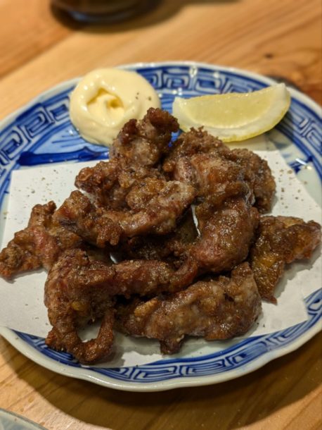 カリっと揚げられた豚肉はマヨとレモンが合う。