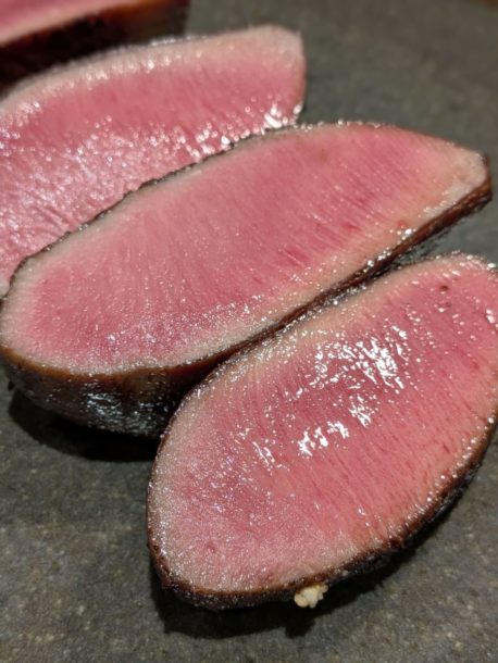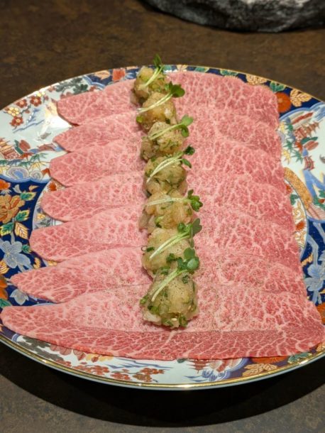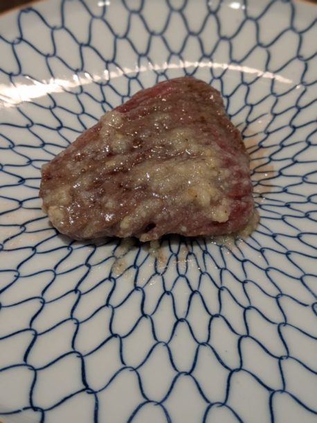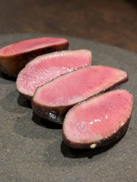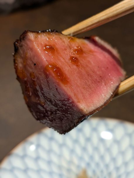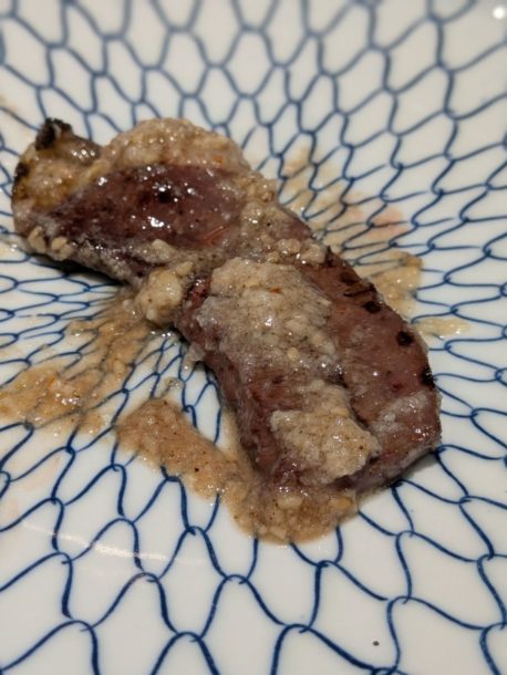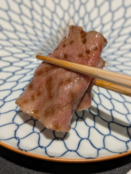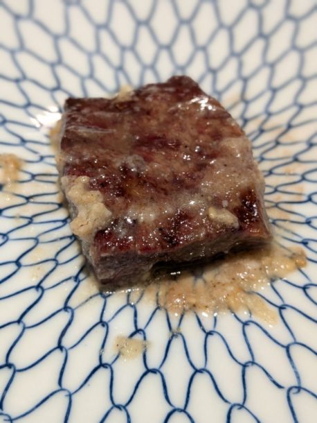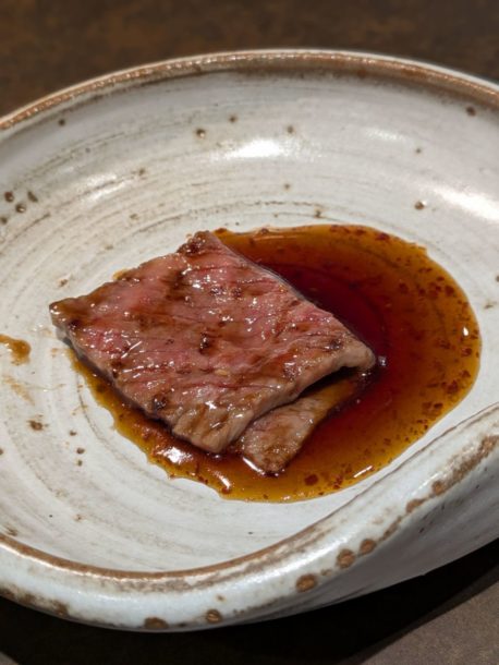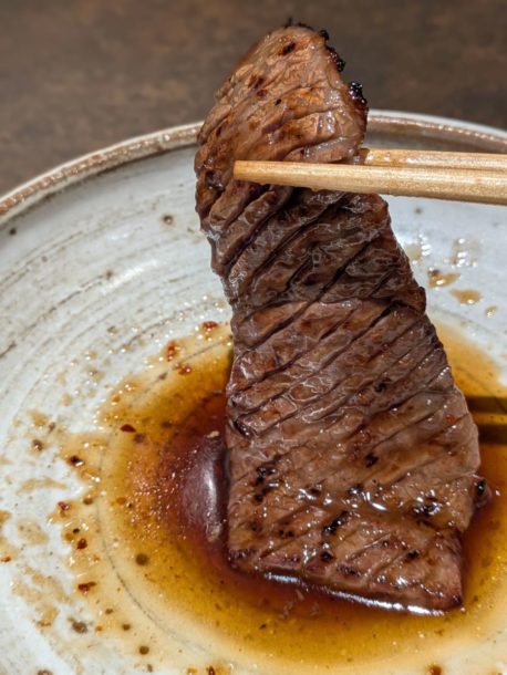 宮崎県産雌牛ミスジを片面焼き。