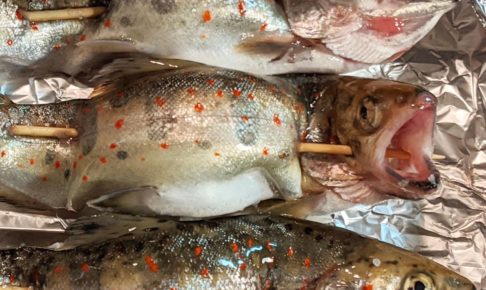 桜みて帰る途中アマゴ入手。 内蔵は食べたくないからエラから引っ張りだして串刺しました。今から焼きます〜。 アマゴは食卓に並ぶ前に熱々で食べてまいました。 焼きながら色々作りました。 ★葉たまねぎ&せせりの味噌クリーム煮★…