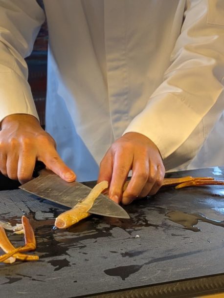 目の前で炭火で火入れ