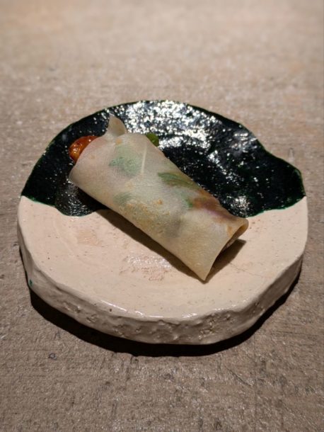 カオヤーピンで包んだ一品。甘めのお味噌とハーブの薫りで一品目から印象に残りました